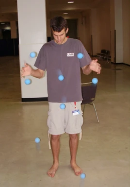 Robert Mosher III is a bounce juggler. He won the 2007 IJA Individual Numbers Bouncing competition with 29 catches of a 10 ball lift bounce, setting a new world record.[1] Later that year, he broke the record with 39 catches.[2](video)